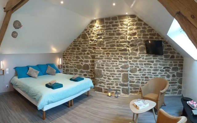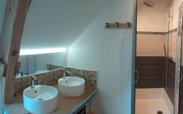 Une petite chambre d’hôtes avec une vue sur l’abbaye, deux chambres d’hôtes situées au rez-de-chaussée avec une salle de douche et des toilettes.